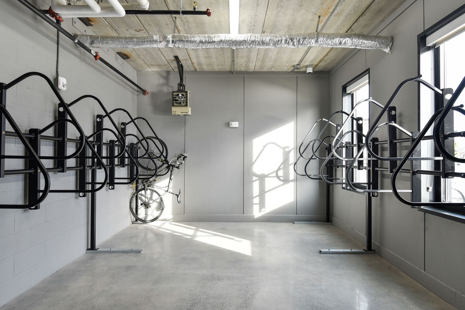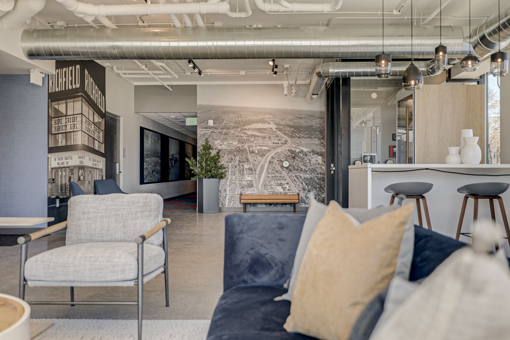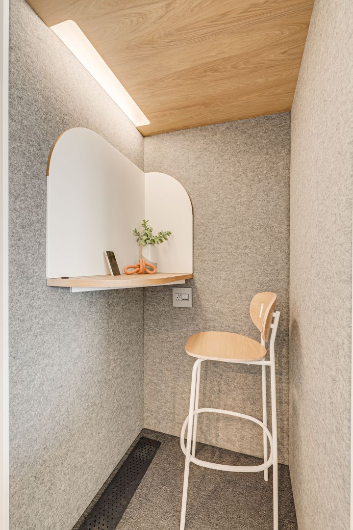 Tech-friendly spaces including co-working lounge and app-based wellness center
